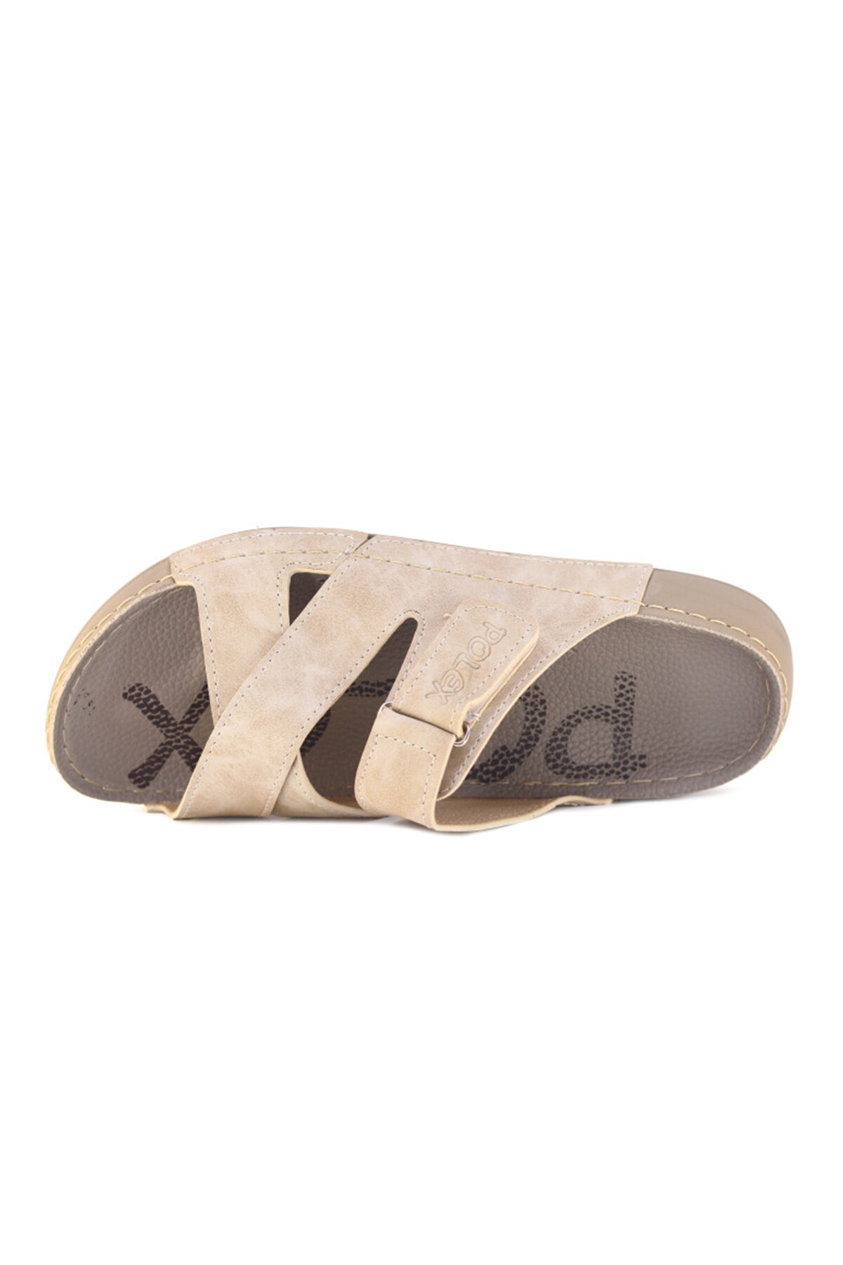 Bej Çapraz Cırtlı Spor Taban Terlik