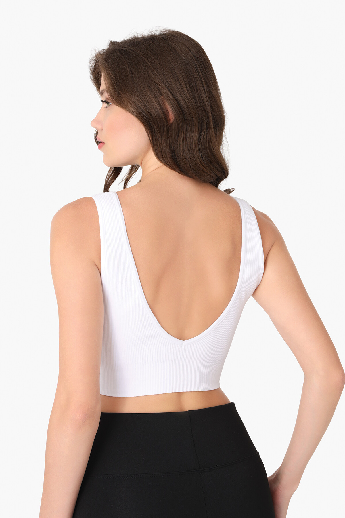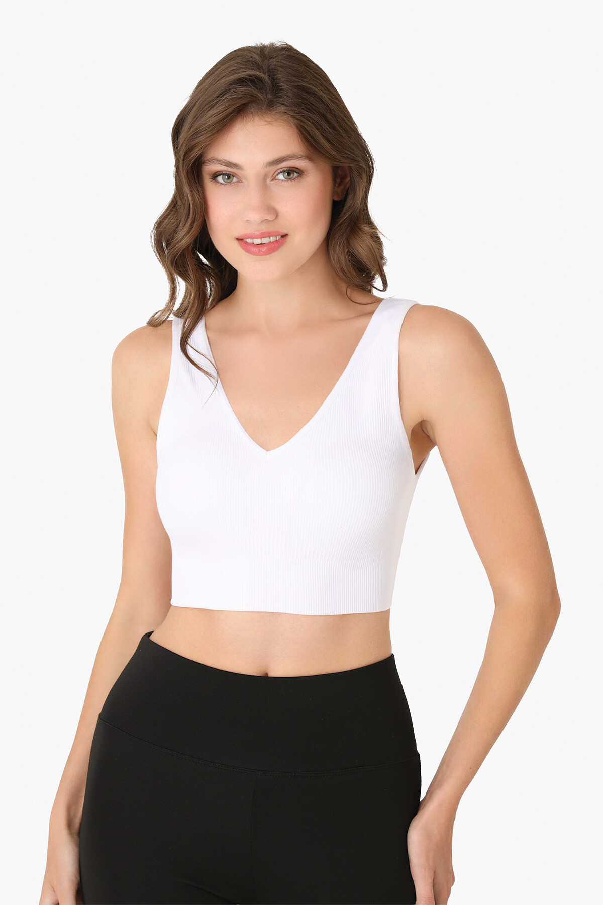 Beyaz Dikişsiz Kaplı V Yaka Büstiyer
