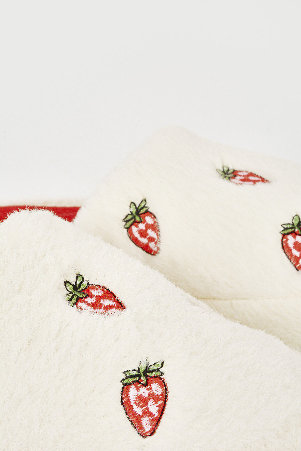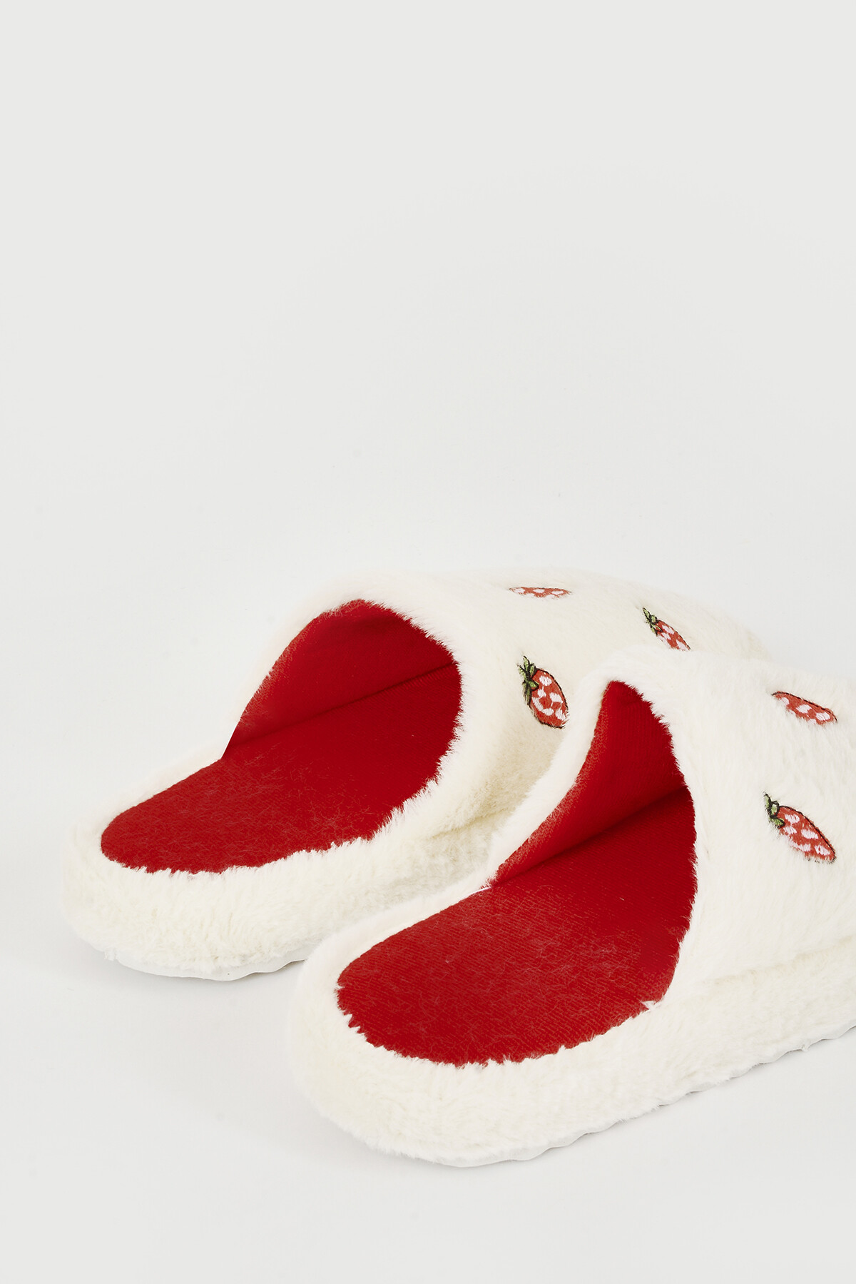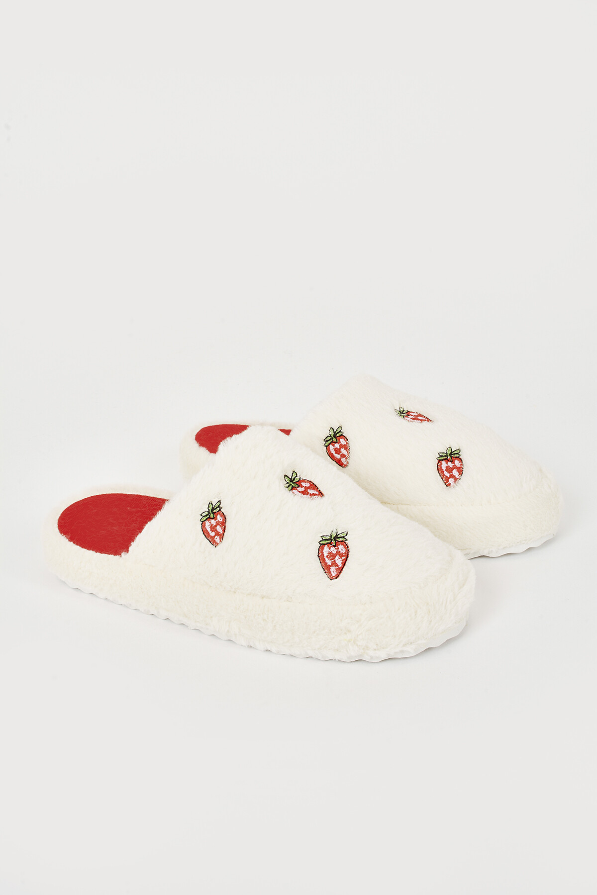Ekru Çilek Desenli Ev Terliği