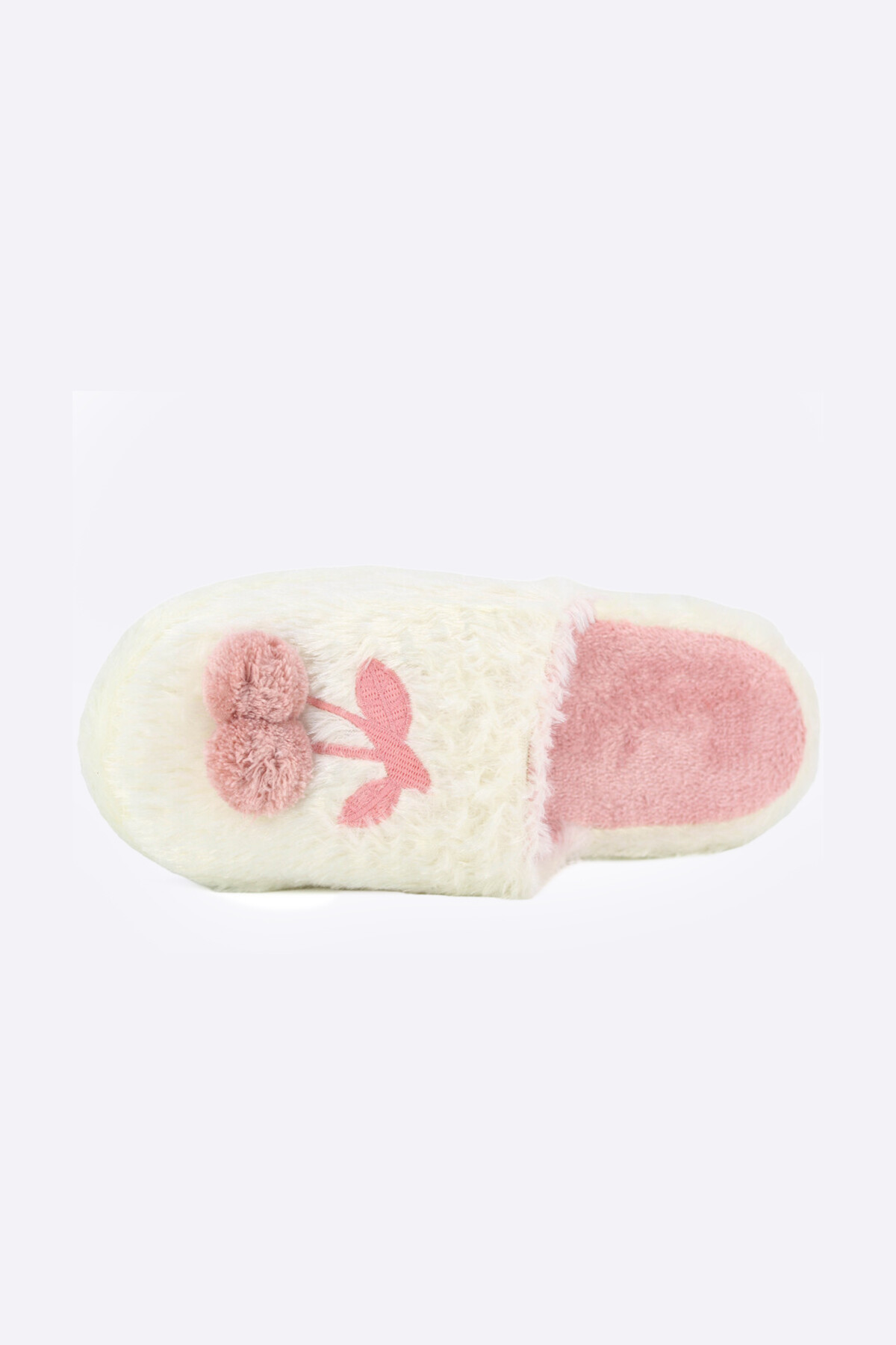 Ekru Pelüş Kirazlı Önü Kapalı Ev Terliği