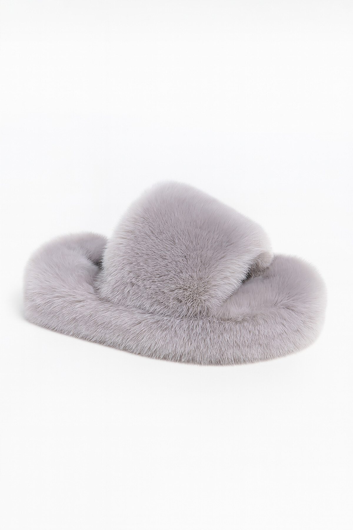 Gri Pelüşlu Açık Kışlık Ev Terliği