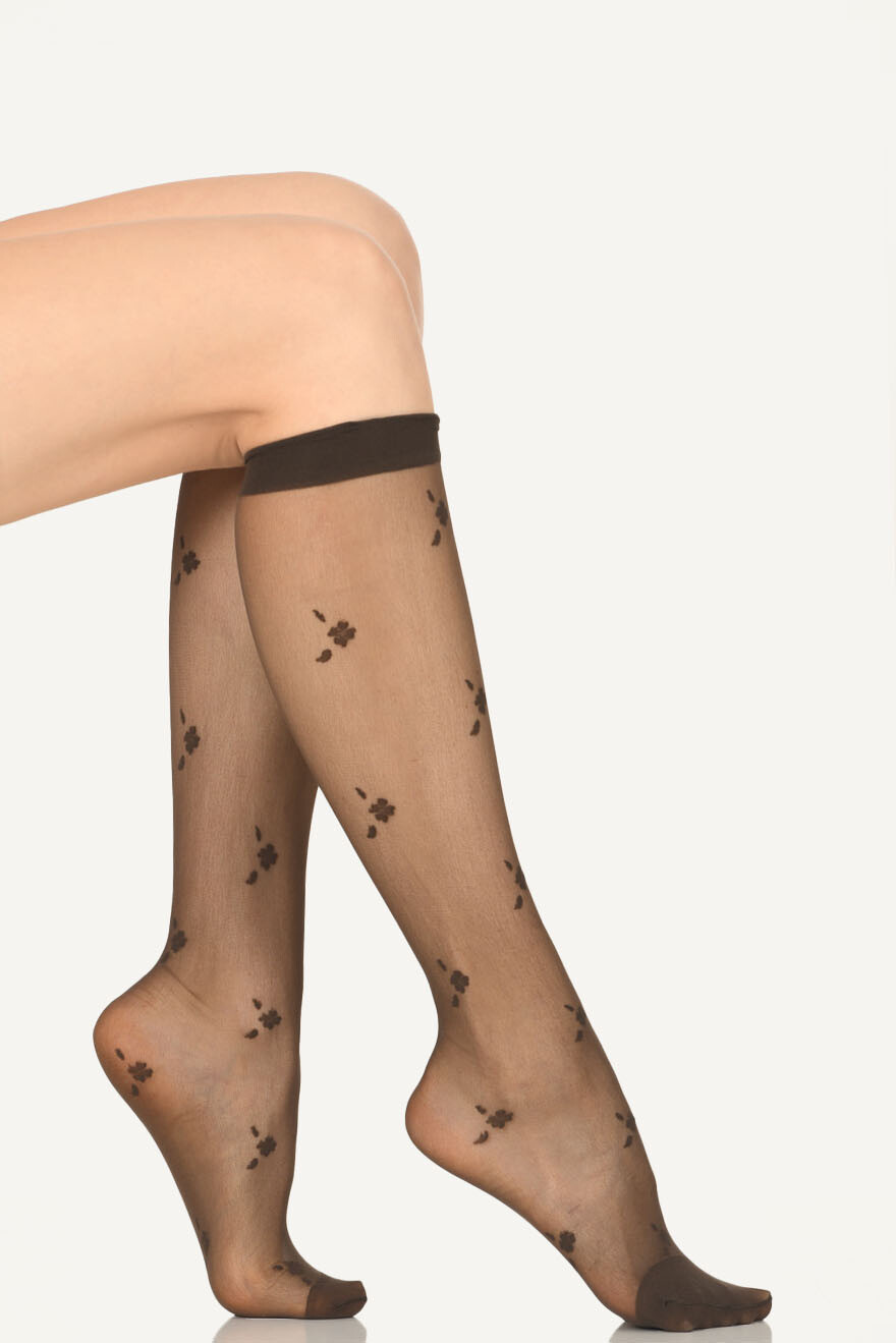 Kahverengi Sheena Desenli Diz Altı Pantolon Çorabı