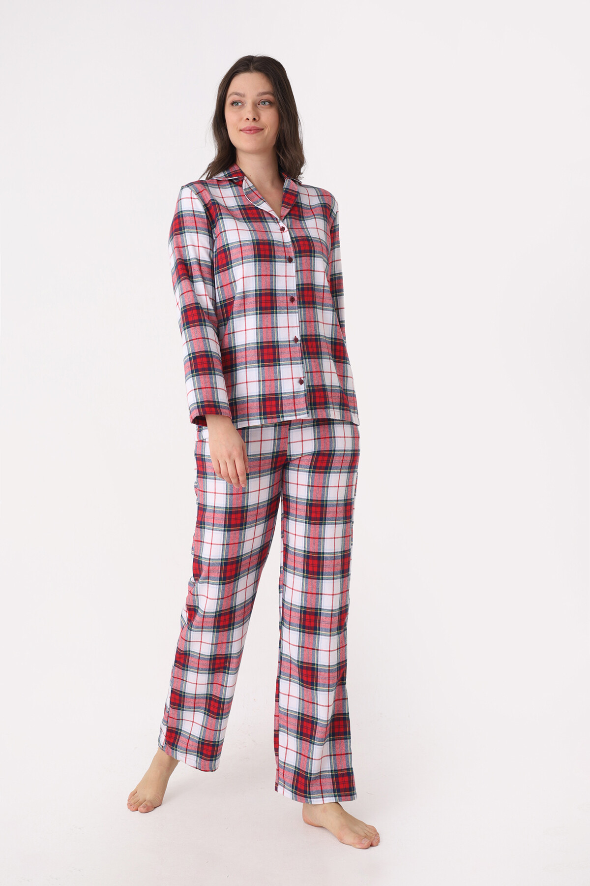 Kırmızı Önden Düğmeli Ekose Pijama Takımı