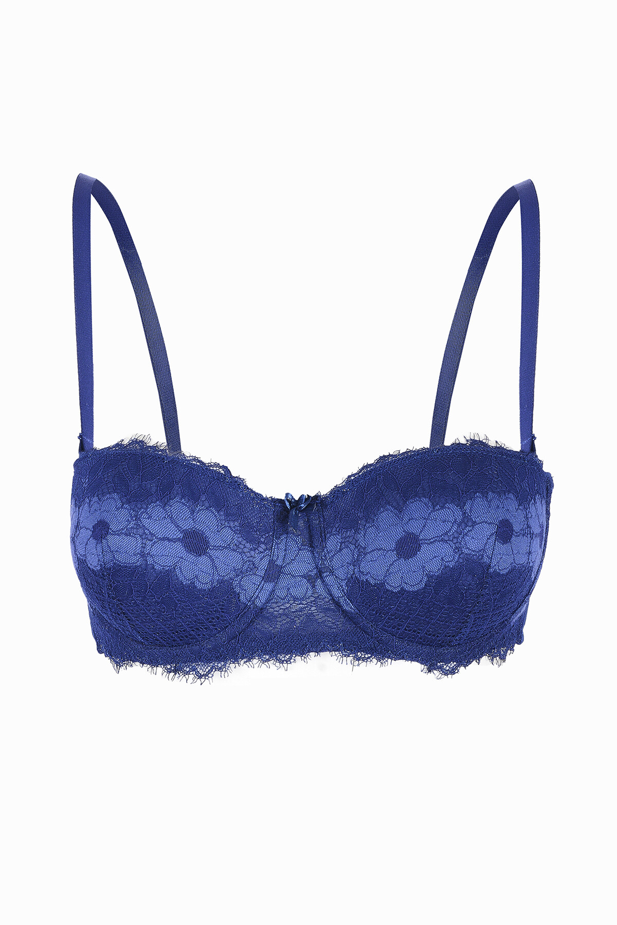 Lacivert Fiori Dolgulu Straplez Sütyen