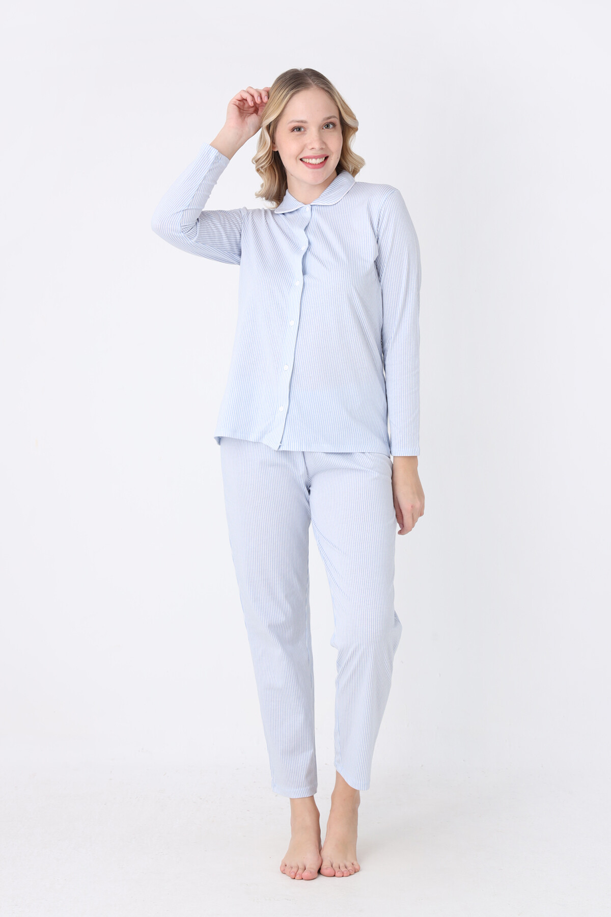 Mavi Kurdele Önden Düğmeli Pijama Takım