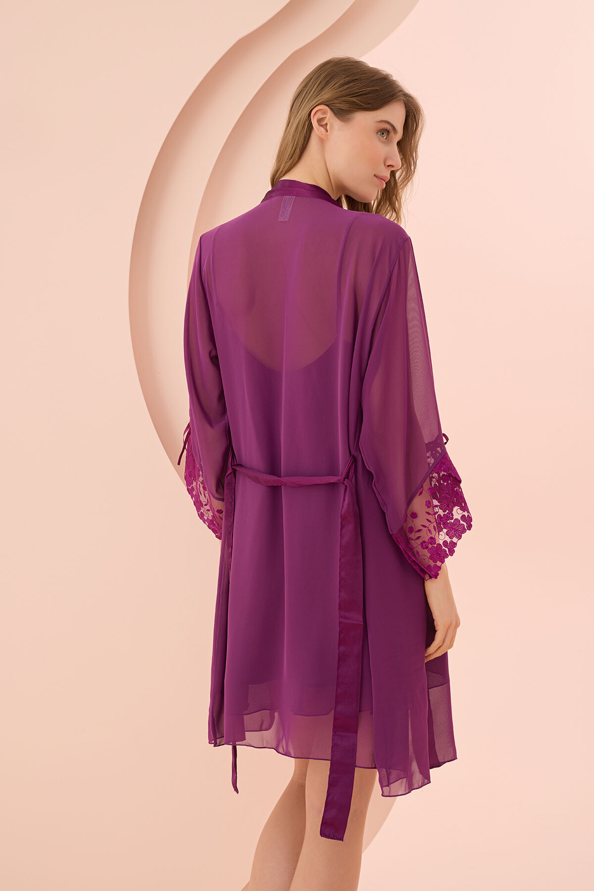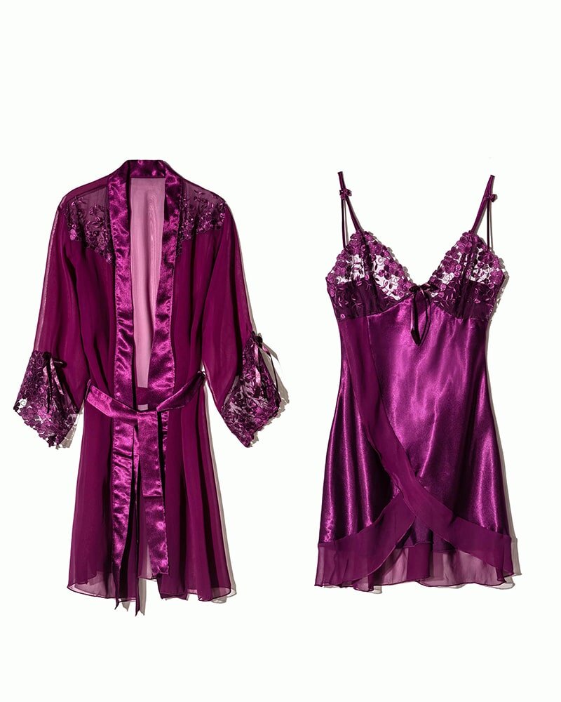 Mor Fantezi Saten Gecelik Sabahlık Takım