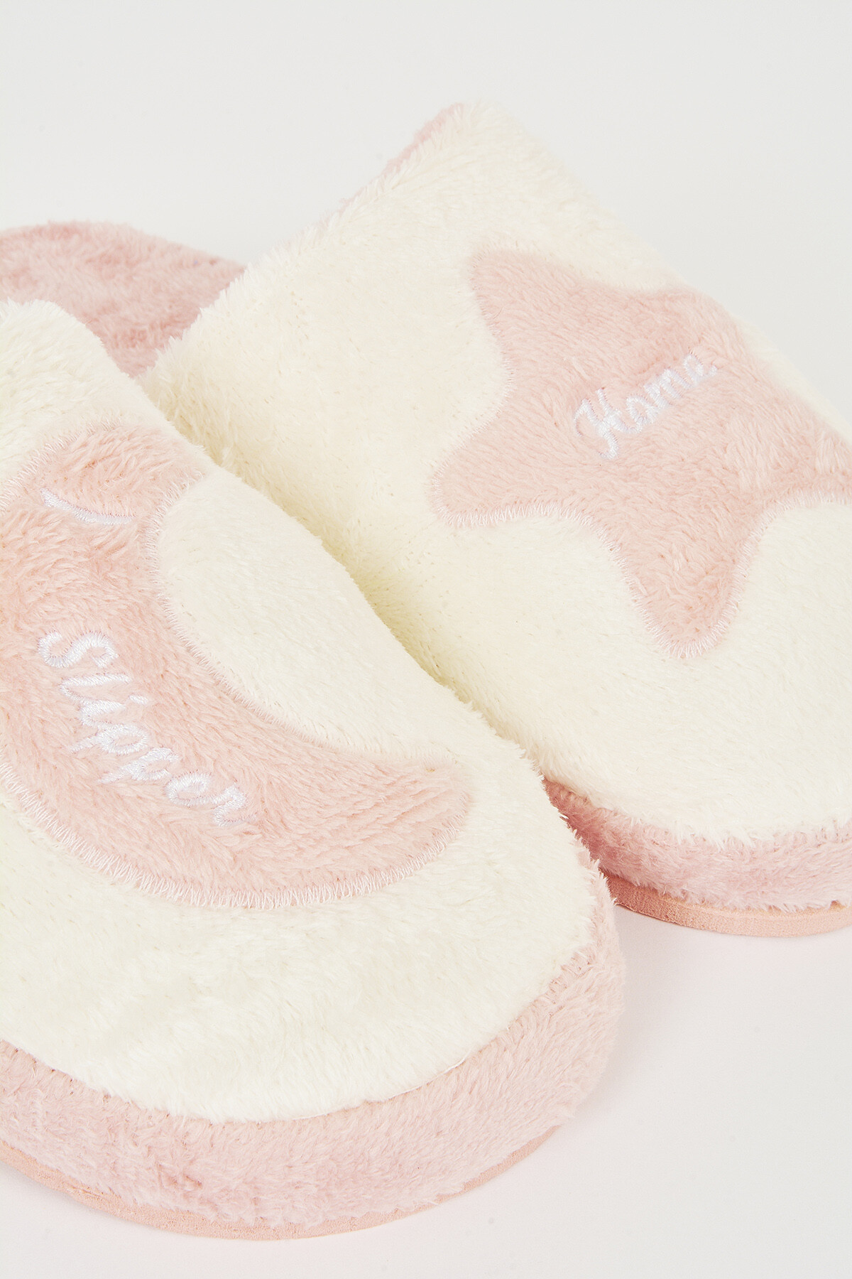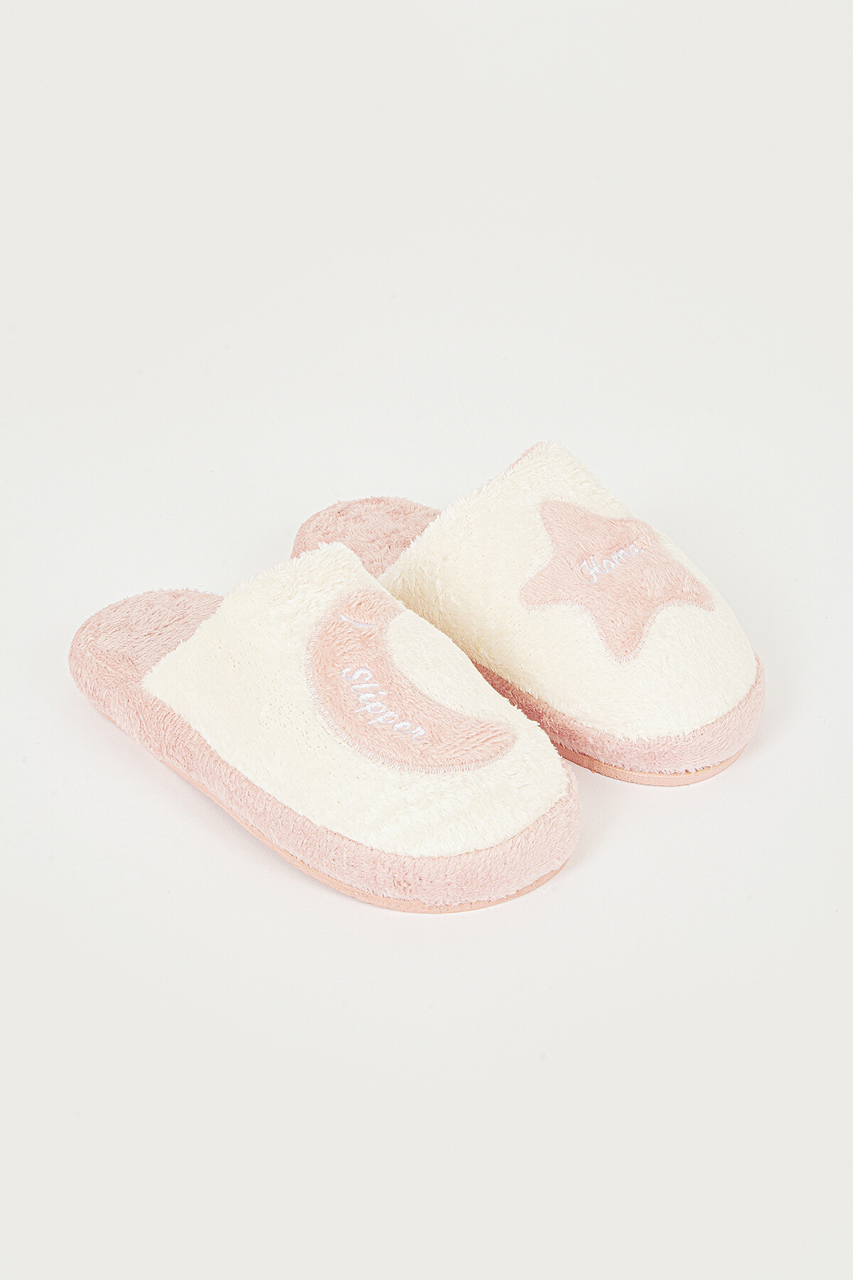 Pembe -Beyaz Ay Yıldız Ev Terliği