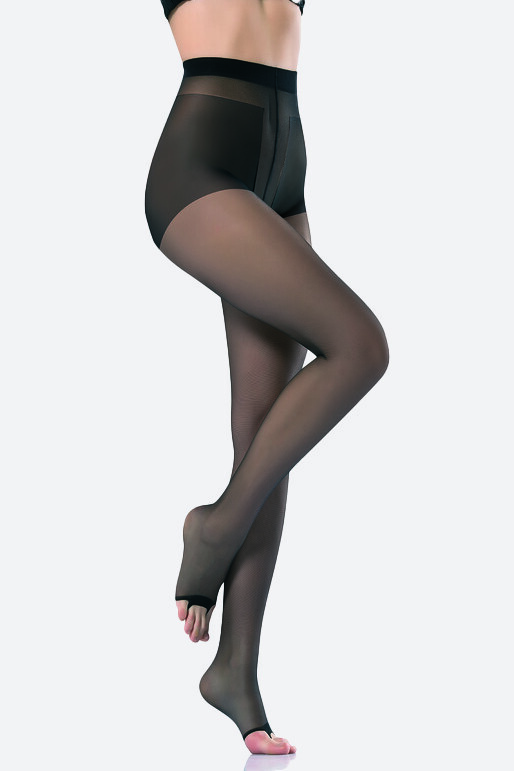 Siyah 10 Denye Burnu Açık Külotlu Çorap