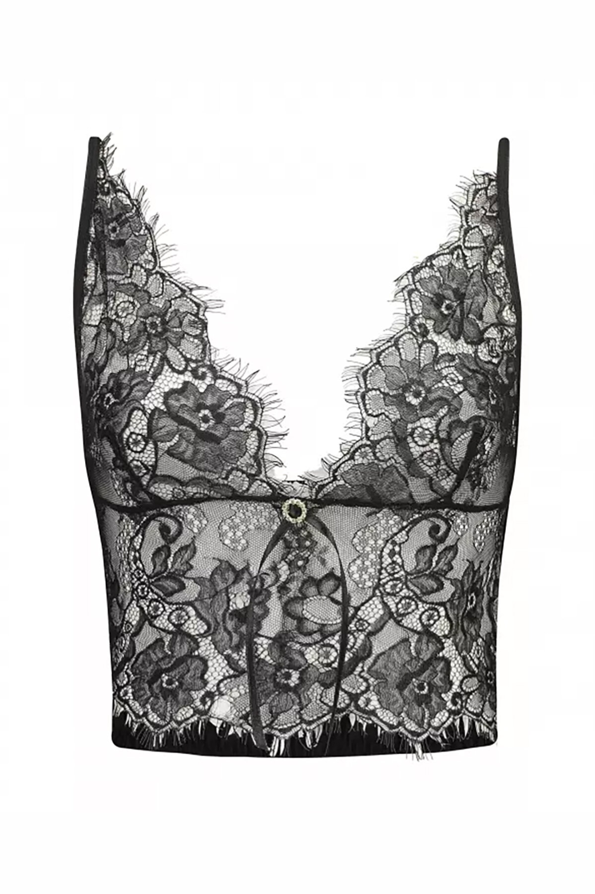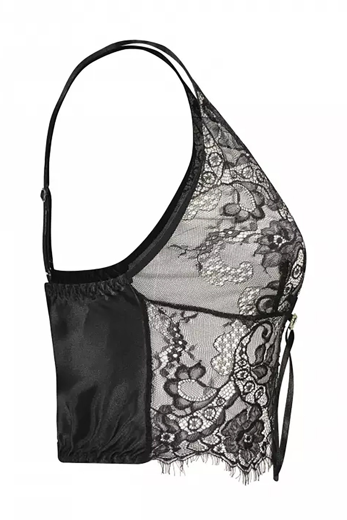 Desteksiz, balenli ve dantel detaylı straplez şıklık.