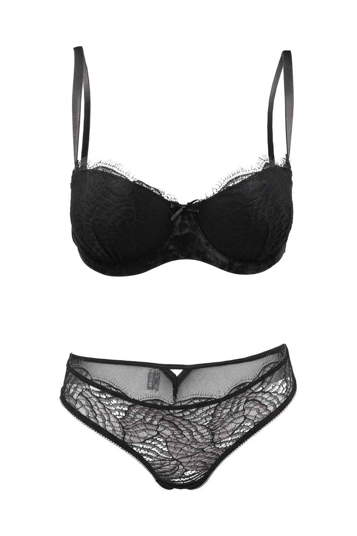 Siyah Hafif Destekli Jartiyer Sütyen Takımı