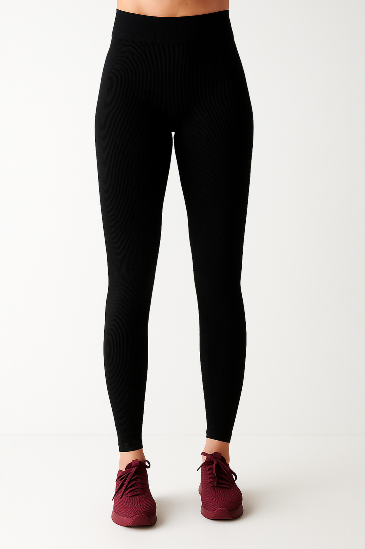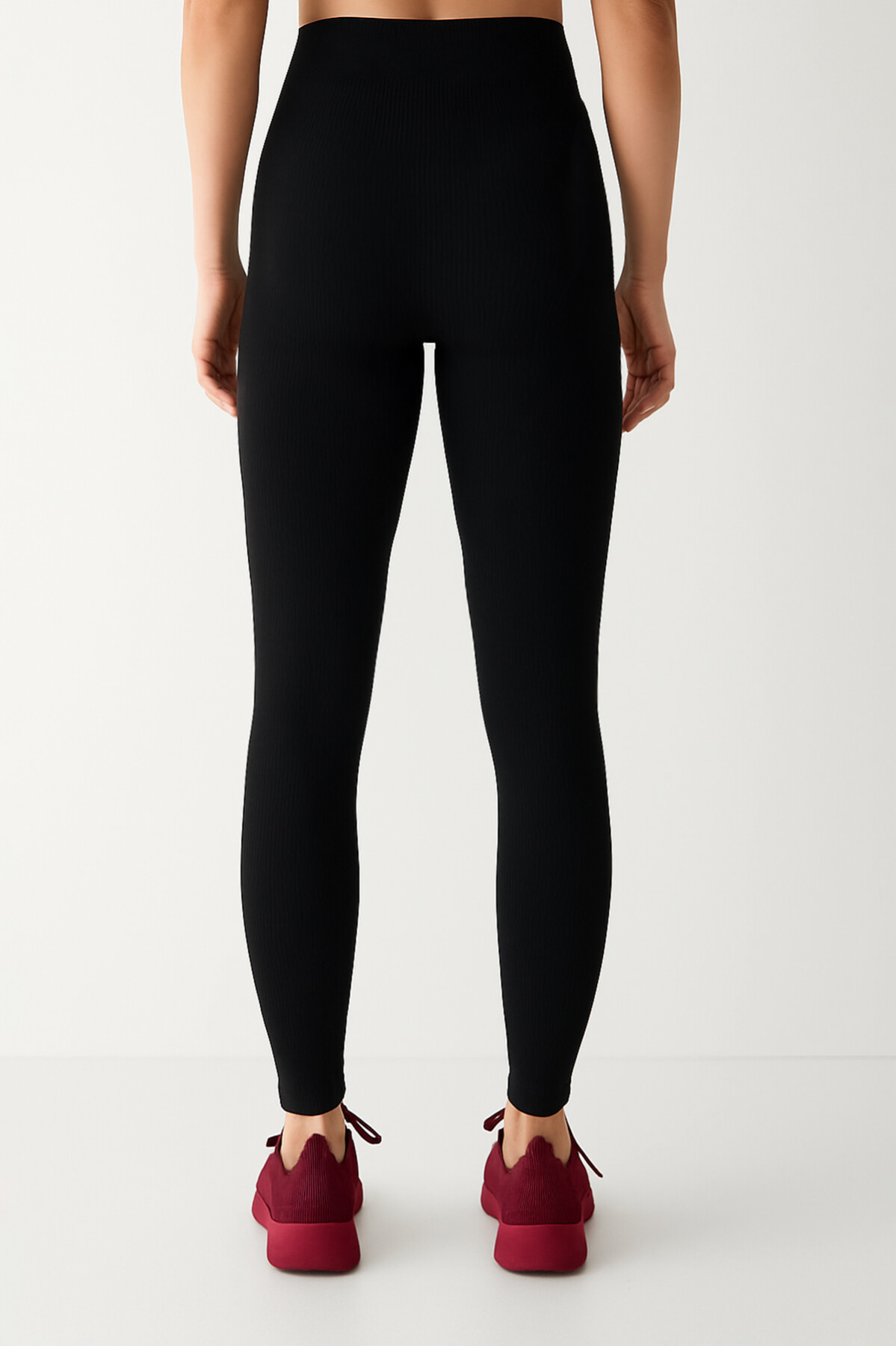 Siyah Dikişsiz Yüksek Bel Toparlayıcı Tayt