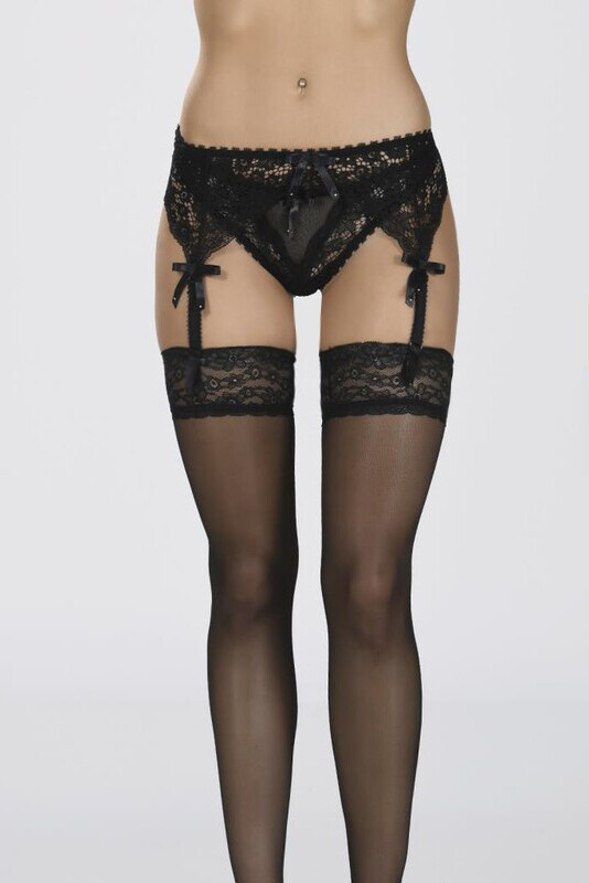 Siyah Cham Jartiyerli Desteksiz Sütyen String Takım