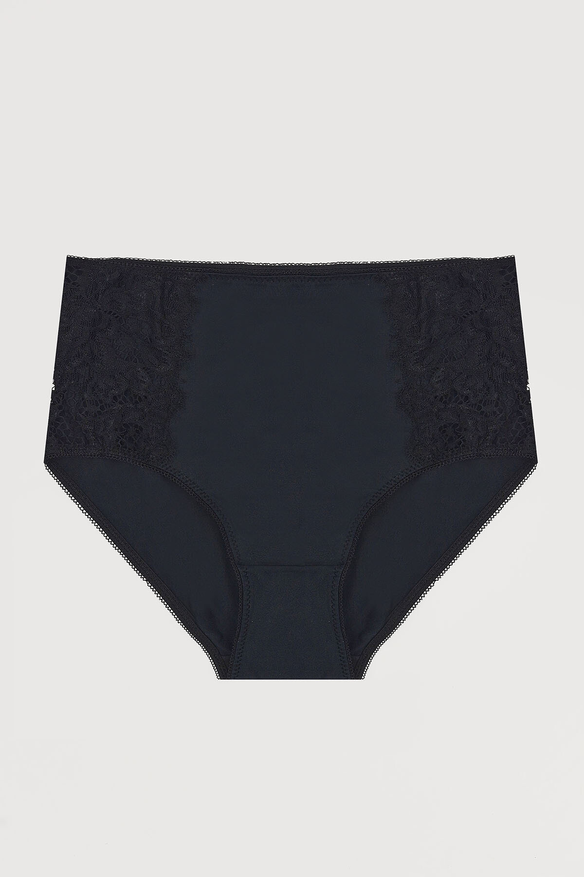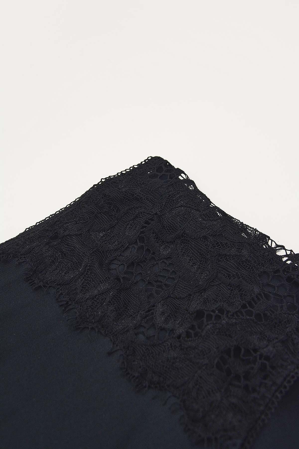 Siyah Lysa Dantelli Saten Yüksek Bel Külot