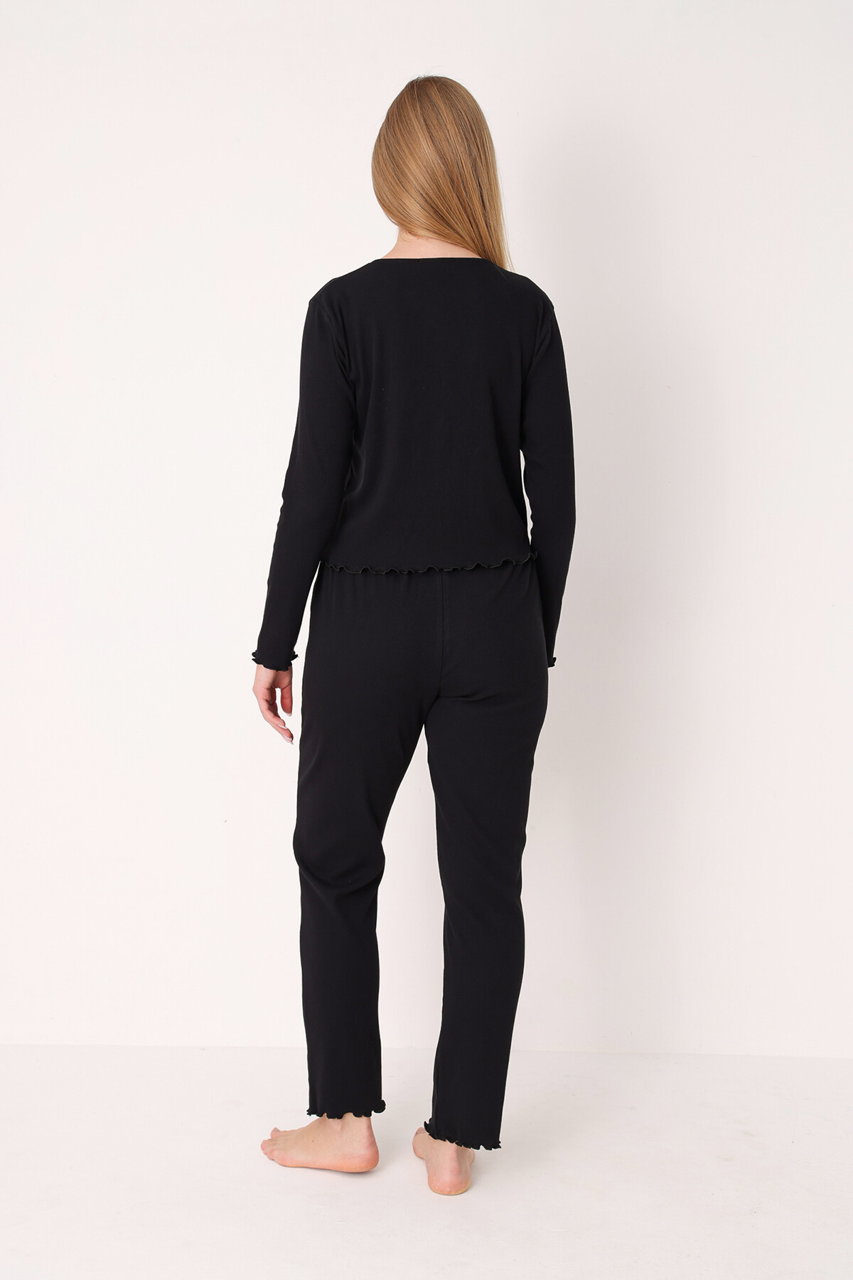 Siyah Papatya Desenli Önden Bağlamalı Pijama Takımı