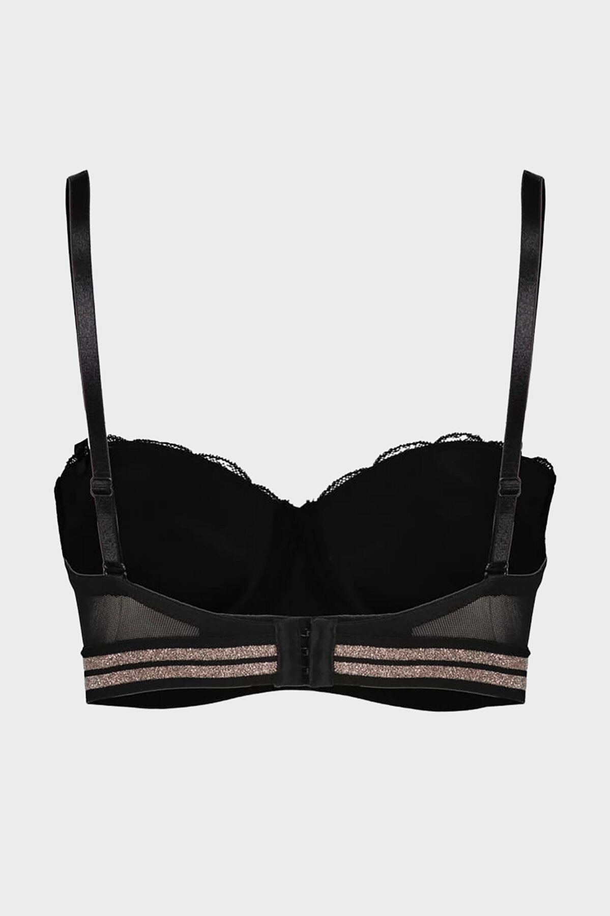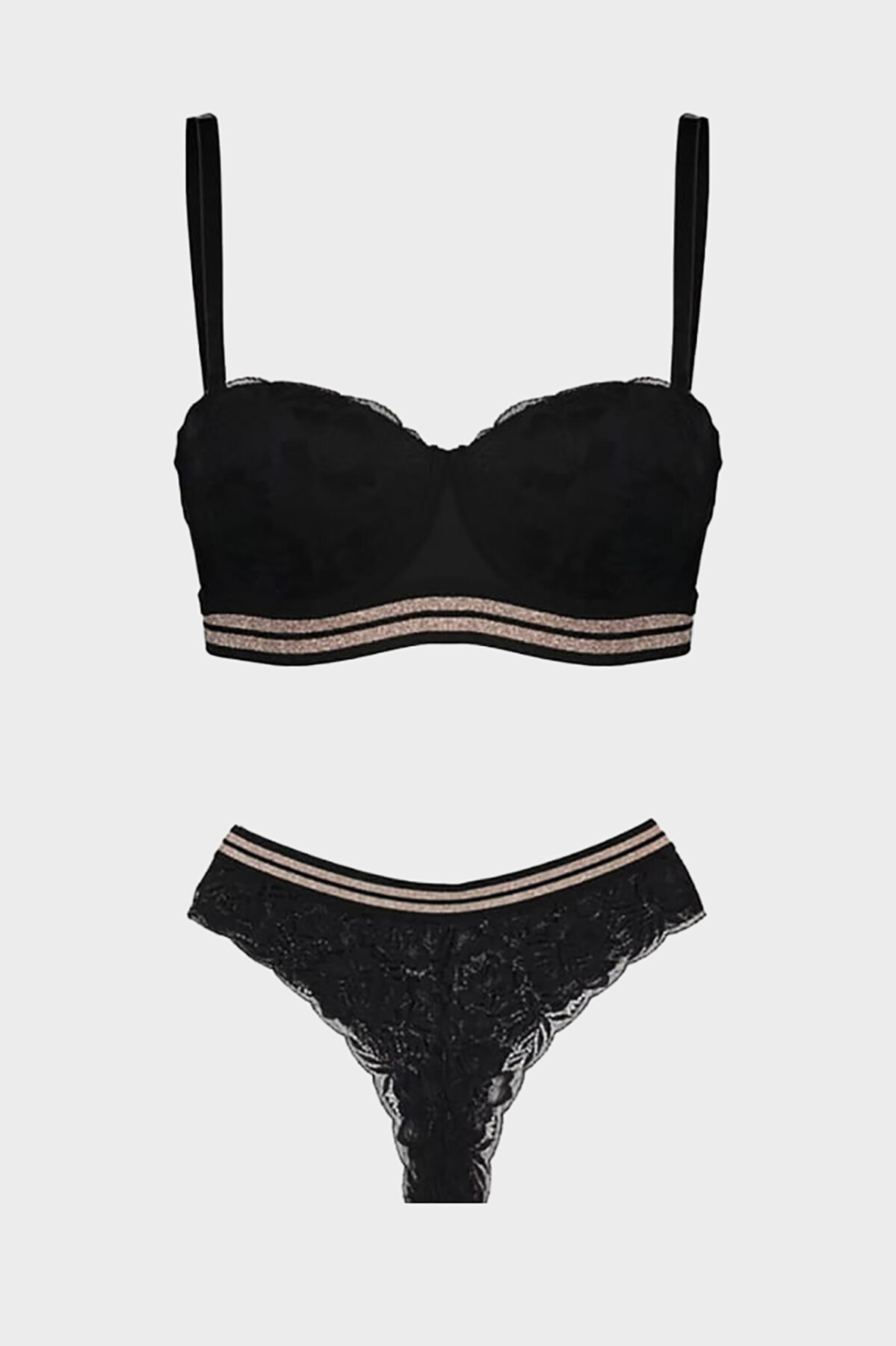 Siyah Rose Silvery Simli Straplez Sütyen Takımı
