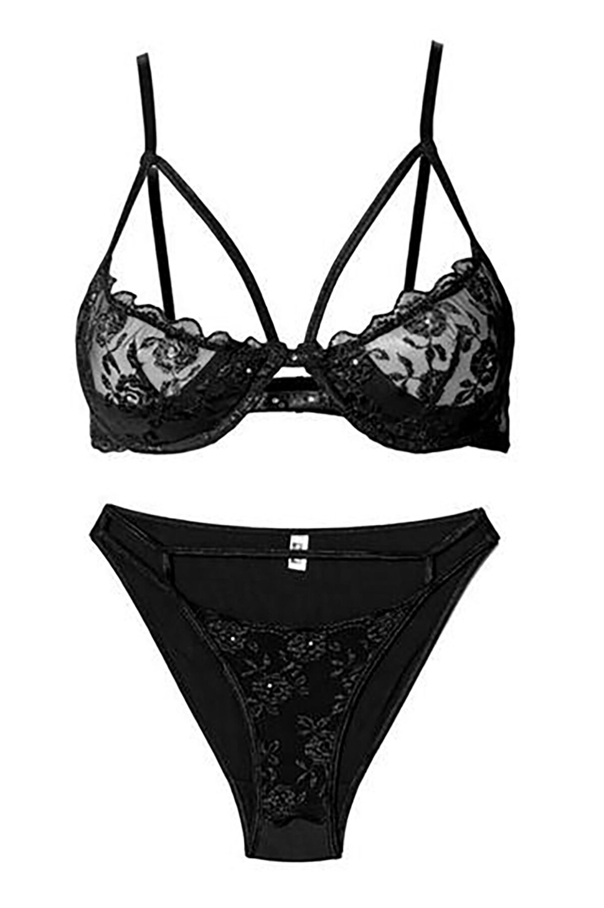 Siyah Taşlı Dantel Sütyen Külot Takım