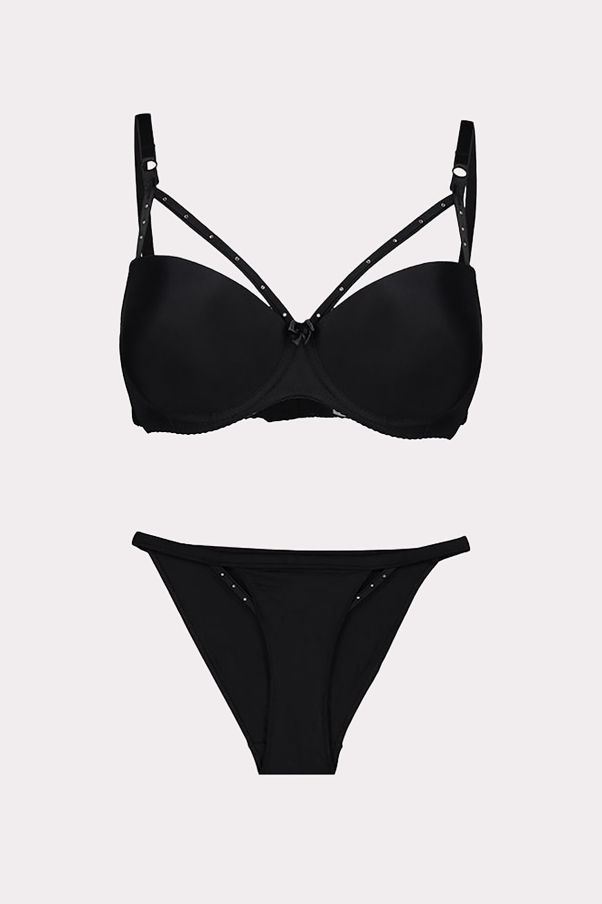 Siyah Taşlı Dantel Sütyen Külot Takım