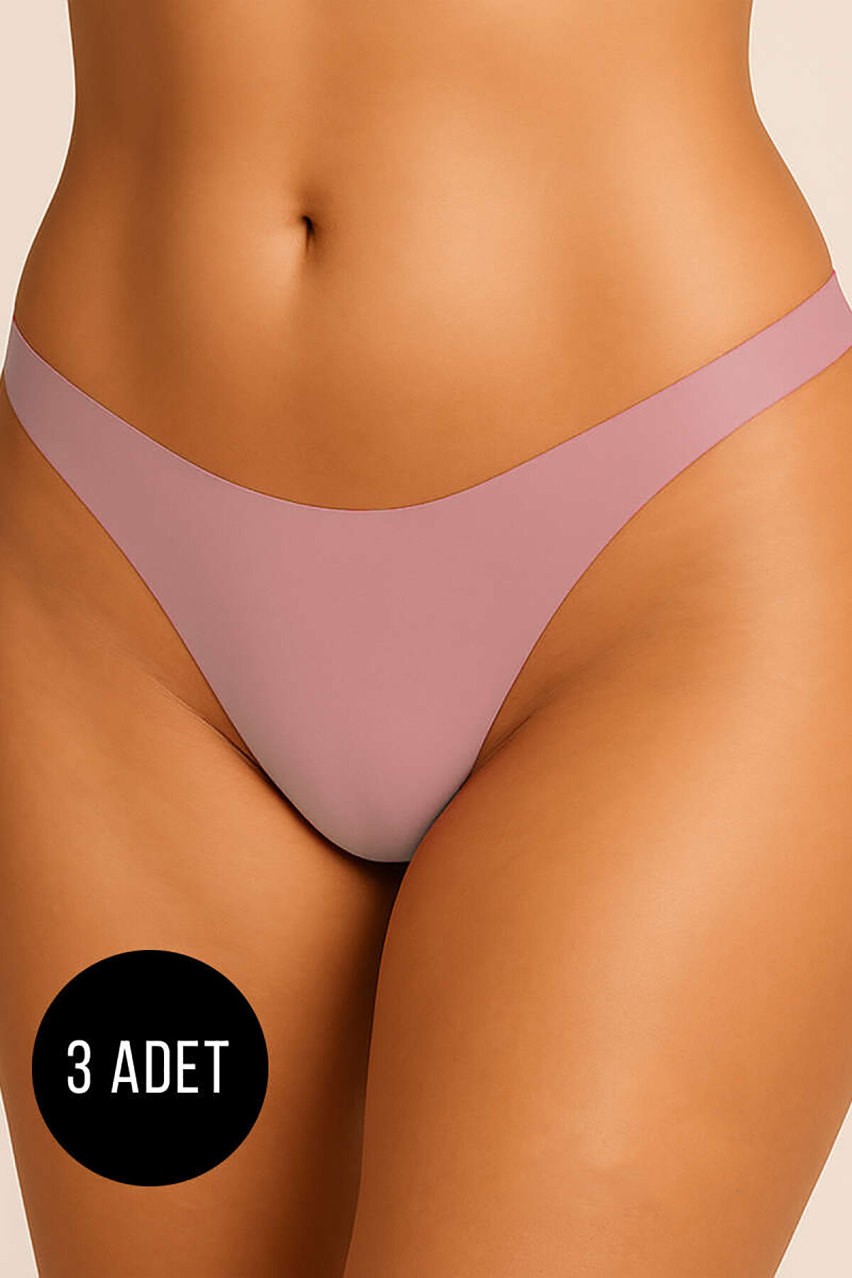 Gül Kurusu Pembe İndigo 3'lü Fitilli Yüksel Bel Külot