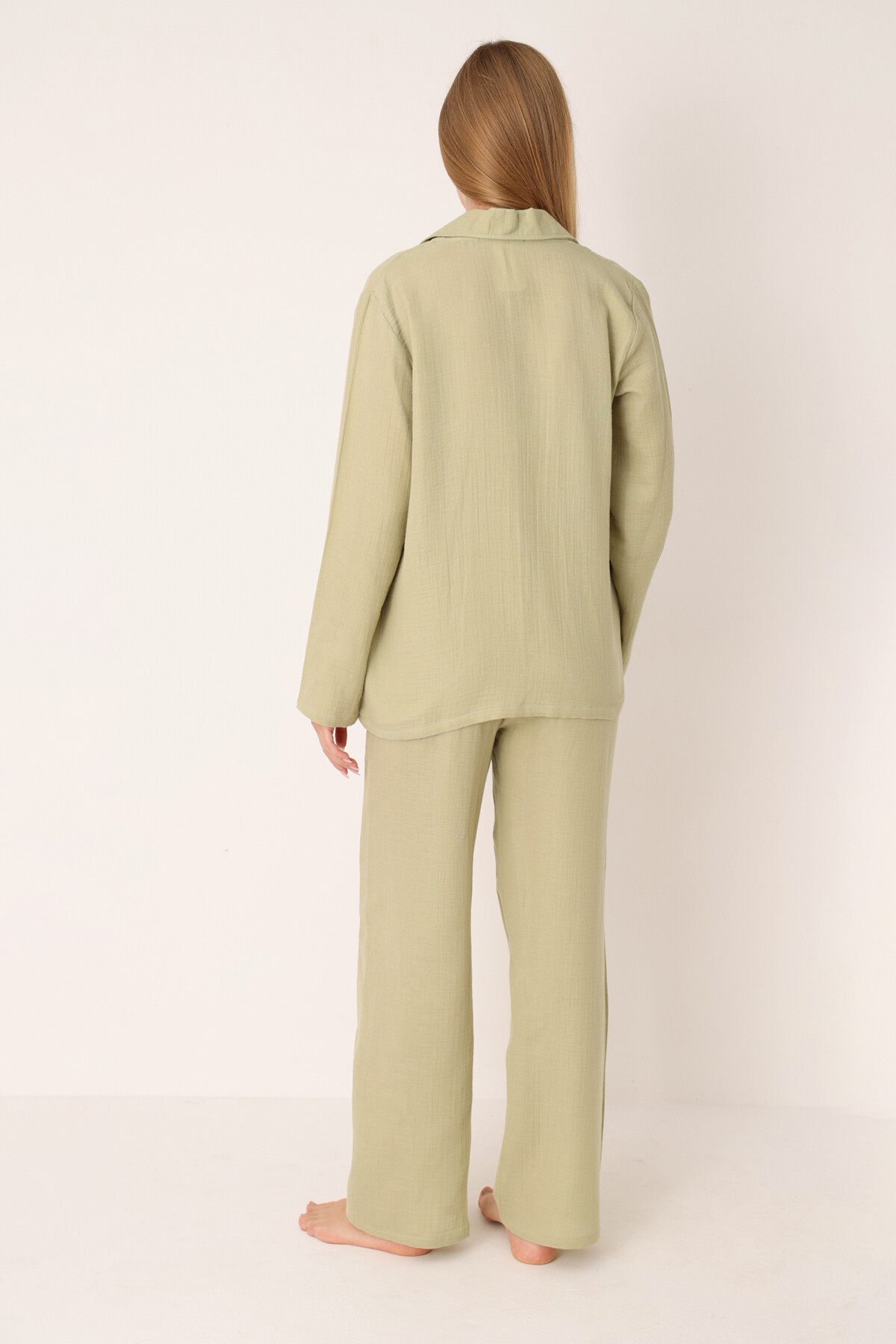 Yeşil Straight Önden Düğmeli Pijama Takım